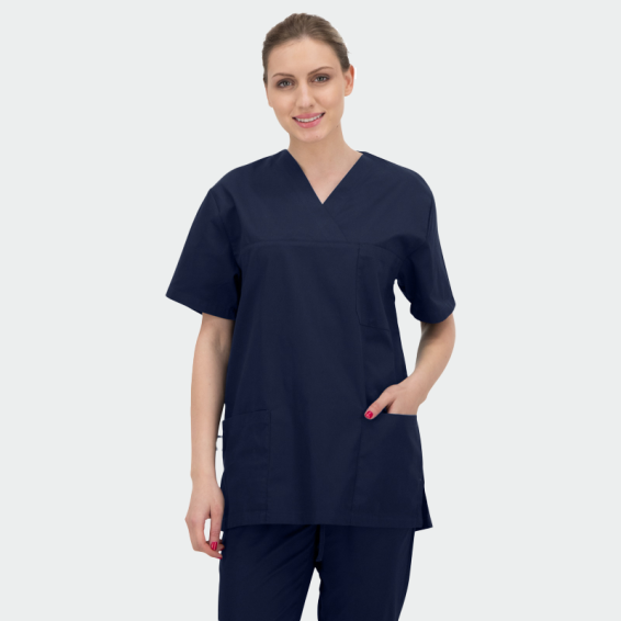 Our unisex scrub top ANGEL has a straight loose cut, and it is comfortable and convenient to wear. The pockets have reinforced seams. CL40° color retention technology is applied. Suitable for the daily work of doctors, nurses, dentists, pharmacists, veterinarians, medical staff, workers, and students worldwide. It is made in 8 classic and popular colors. The scrub top can be combined with ALESSI scrub trousers.