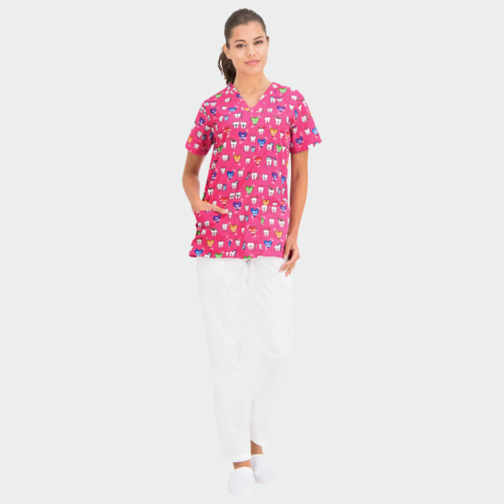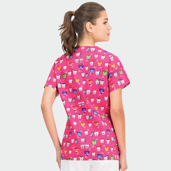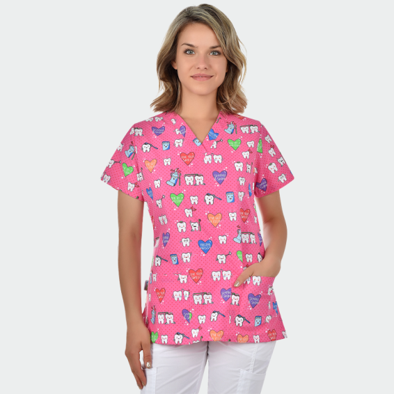 B-well BAMBINA scrub top has fun patterns, suitable for children's medical centers, dental offices, nurseries, veterinary clinics and many more. The model is practical and one of the best sellers from B-well's medical clothing.
