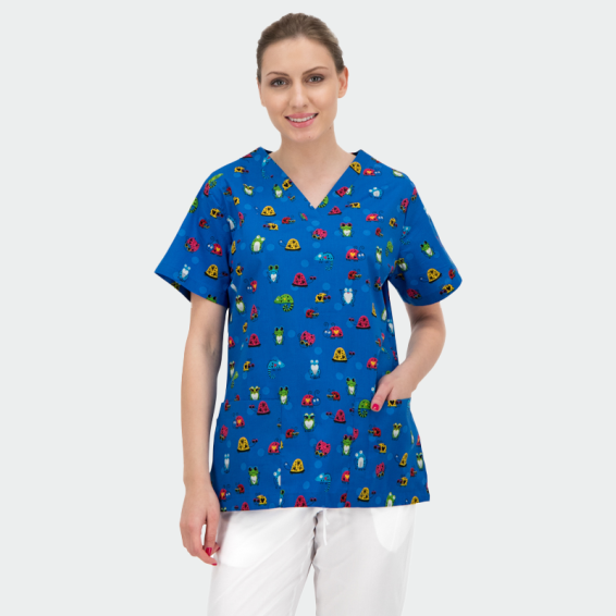 B-well BAMBINA scrub top has fun patterns, suitable for children's medical centers, dental offices, nurseries, veterinary clinics and many more. The model is practical and one of the best sellers from B-well's medical clothing.