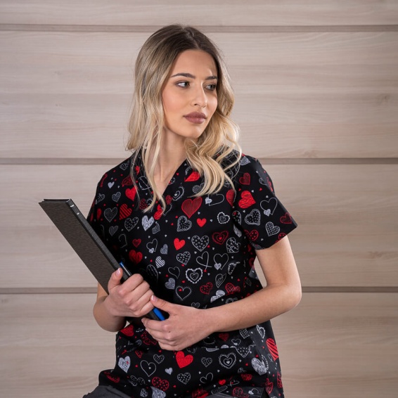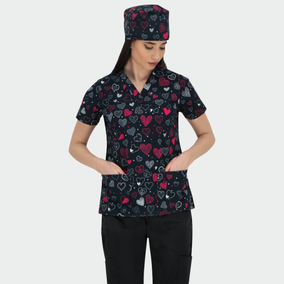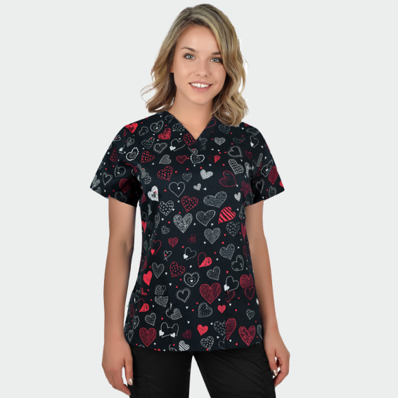B-well BAMBINA scrub top has fun patterns, suitable for children's medical centers, dental offices, nurseries, veterinary clinics and many more. The model is practical and one of the best sellers from B-well's medical clothing.