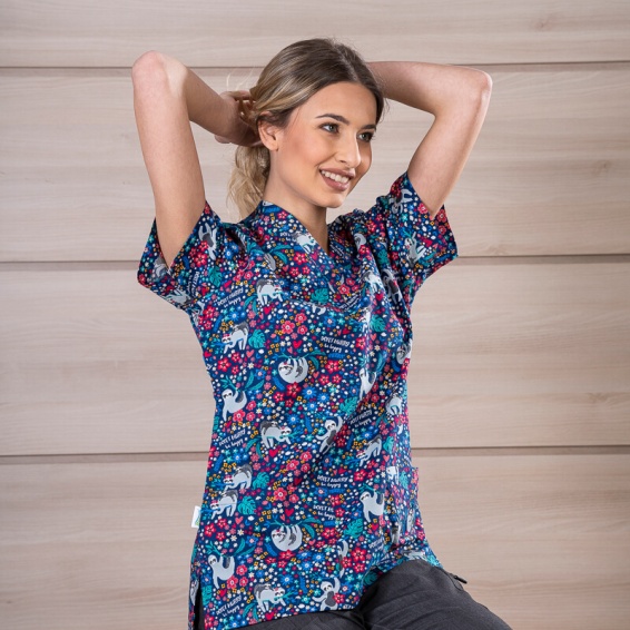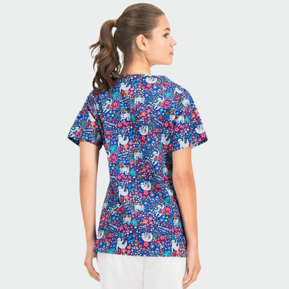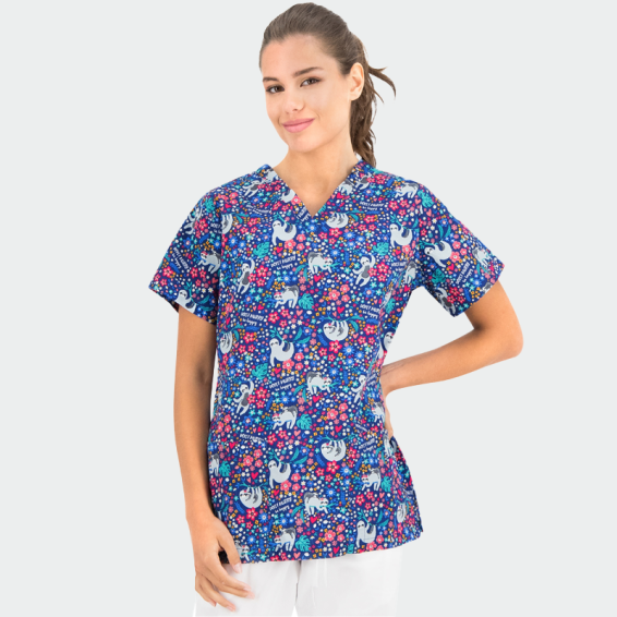 B-well BAMBINA scrub top has fun patterns, suitable for children's medical centers, dental offices, nurseries, veterinary clinics and many more. The model is practical and one of the best sellers from B-well's medical clothing.