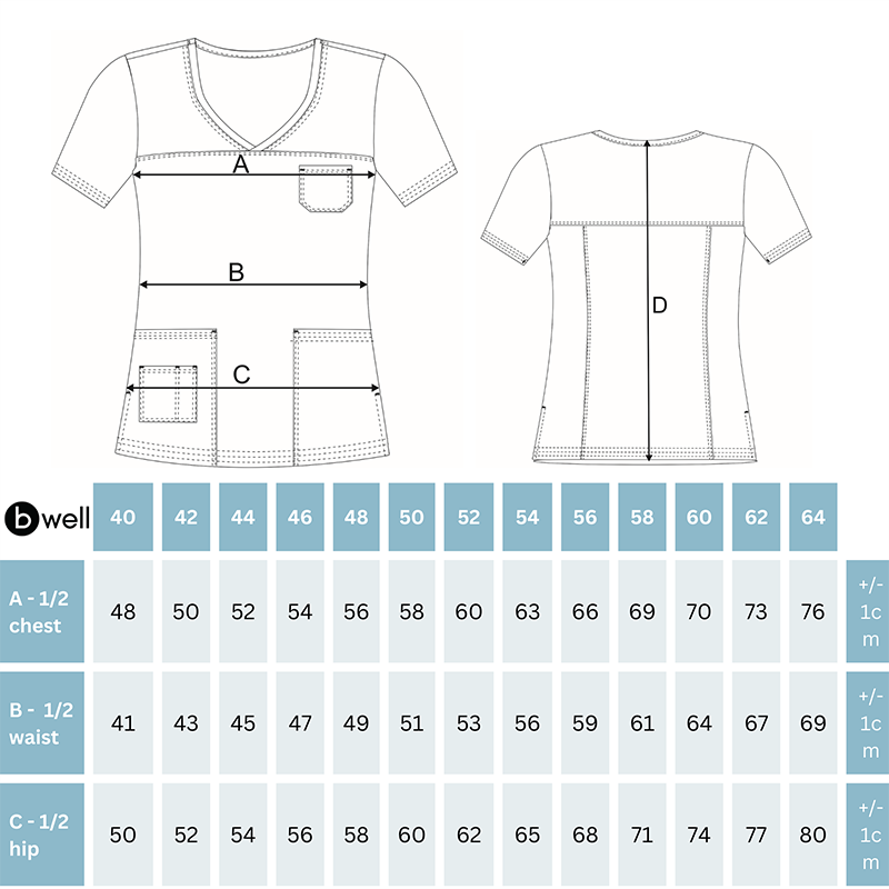 Our scrub top ANDREA has a premium fit and 7 classic and modern colors, which makes it possible to use it in many areas of healthcare, aesthetic medicine, pediatric departments etc. Our scrub top ANDREA has 3D Flex technology and CL 40°C color retention technology integrated.