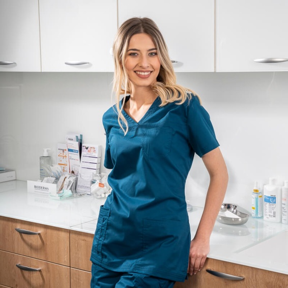 Our scrub top ANDREA has a premium fit and 7 classic and modern colors, which makes it possible to use it in many areas of healthcare, aesthetic medicine, pediatric departments etc. Our scrub top ANDREA has 3D Flex technology and CL 40°C color retention technology integrated.