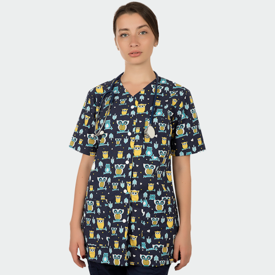 CARINA scrub top has a modern and contemporary look suitable for lovers of colorful patterns. The scrub top is easy to put on and take off and can be worn over a T-shirt or thermal underwear during the colder days. It is available in many different patterns. B-well CARINA scrub top is ideal workwear for kindergartens, dental clinics, children's hospitals, medical students, orderlies, etc. The scrub top is suitable for all seasons of the year.