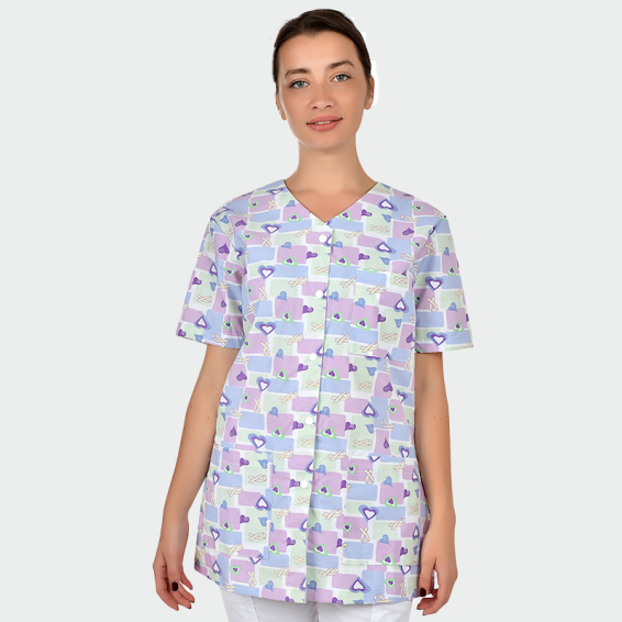 CARINA scrub top has a modern and contemporary look suitable for lovers of colorful patterns. The scrub top is easy to put on and take off and can be worn over a T-shirt or thermal underwear during the colder days. It is available in many different patterns. B-well CARINA scrub top is ideal workwear for kindergartens, dental clinics, children's hospitals, medical students, orderlies, etc. The scrub top is suitable for all seasons of the year.