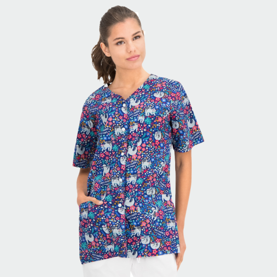 CARINA scrub top has a modern and contemporary look suitable for lovers of colorful patterns. The scrub top is easy to put on and take off and can be worn over a T-shirt or thermal underwear during the colder days. It is available in many different patterns. B-well CARINA scrub top is ideal workwear for kindergartens, dental clinics, children's hospitals, medical students, orderlies, etc. The scrub top is suitable for all seasons of the year.