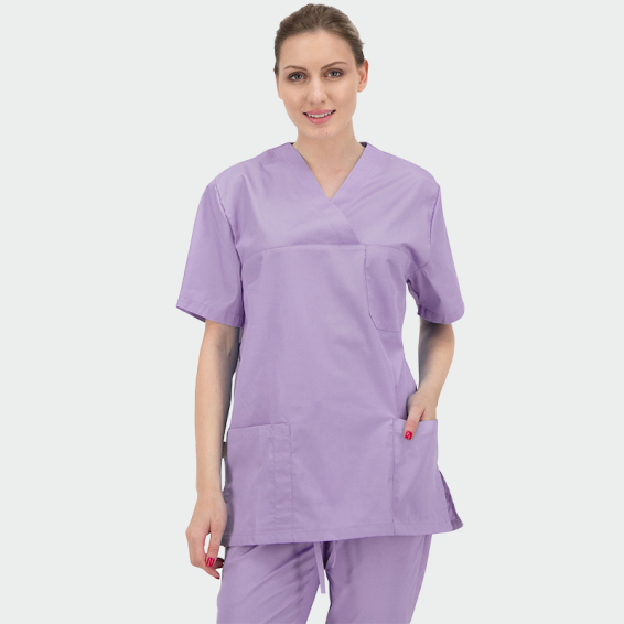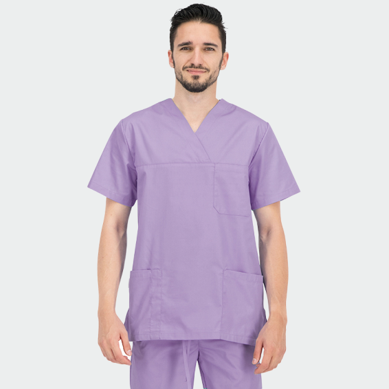 Our unisex scrub top ANGEL has a straight loose cut, and it is comfortable and convenient to wear. The pockets have reinforced seams. CL40° color retention technology is applied. Suitable for the daily work of doctors, nurses, dentists, pharmacists, veterinarians, medical staff, workers, and students worldwide. It is made in 8 classic and popular colors. The scrub top can be combined with ALESSI scrub trousers.