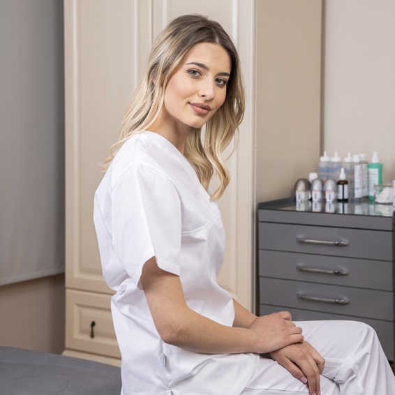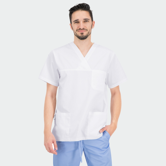 Our unisex scrub top ANGEL has a straight loose cut, and it is comfortable and convenient to wear. The pockets have reinforced seams. CL40° color retention technology is applied. Suitable for the daily work of doctors, nurses, dentists, pharmacists, veterinarians, medical staff, workers, and students worldwide. It is made in 8 classic and popular colors. The scrub top can be combined with ALESSI scrub trousers.