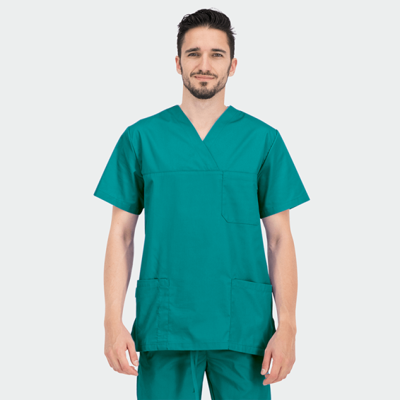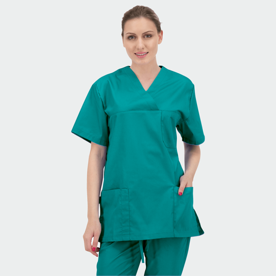 Our unisex scrub top ANGEL has a straight loose cut, and it is comfortable and convenient to wear. The pockets have reinforced seams. CL40° color retention technology is applied. Suitable for the daily work of doctors, nurses, dentists, pharmacists, veterinarians, medical staff, workers, and students worldwide. It is made in 8 classic and popular colors. The scrub top can be combined with ALESSI scrub trousers.