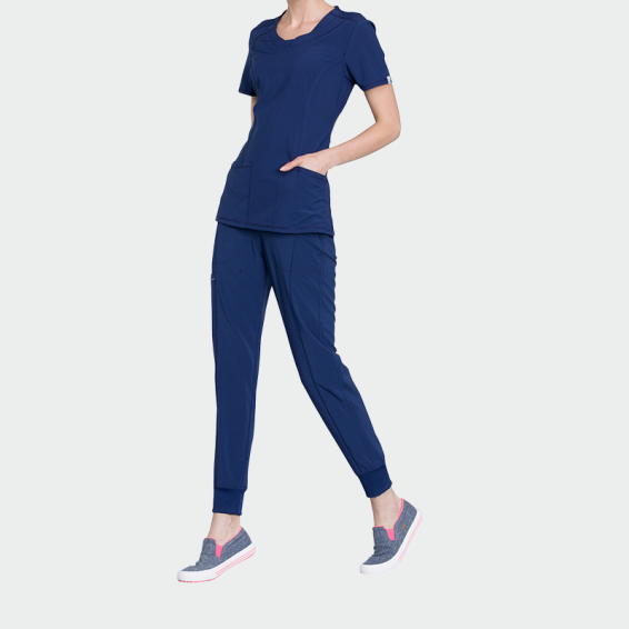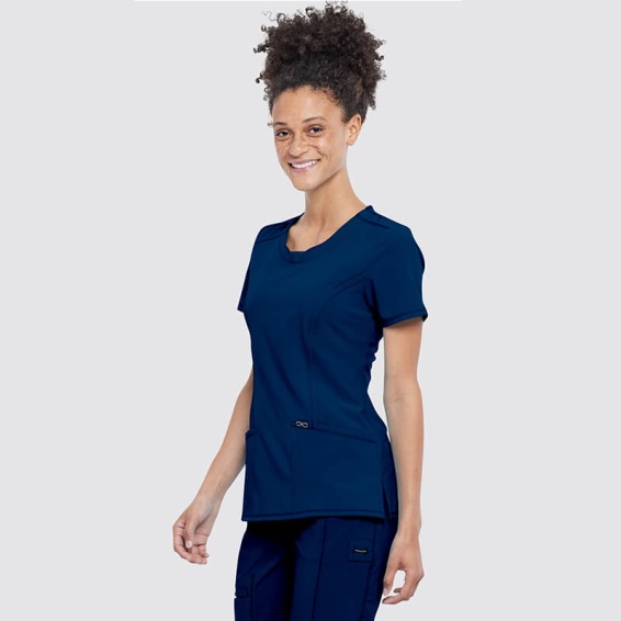 CHEROKEE INFINITY CKE 2624A scrub top is elegant with a regular fit and a modern look. The medical scrub top is made of 95% polyester and 5% elastane with a density of 175g/m².
