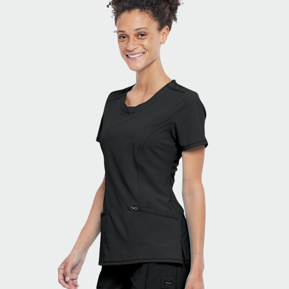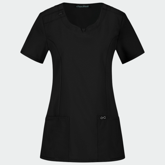 CHEROKEE INFINITY CKE 2624A scrub top is elegant with a regular fit and a modern look. The medical scrub top is made of 95% polyester and 5% elastane with a density of 175g/m².