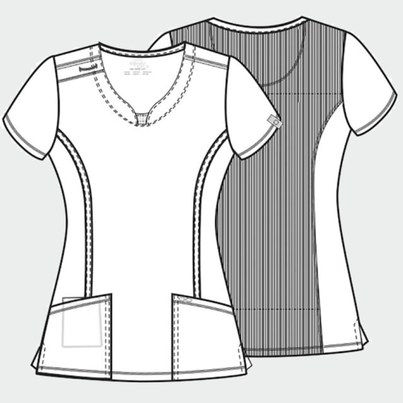 CHEROKEE INFINITY CKE 2624A scrub top is elegant with a regular fit and a modern look. The medical scrub top is made of 95% polyester and 5% elastane with a density of 175g/m².