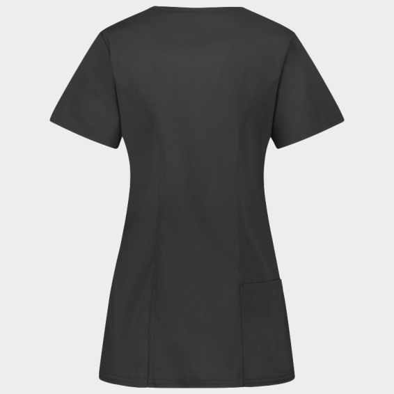 • Two lower side pockets, the right one continuing into the back of the scrub top