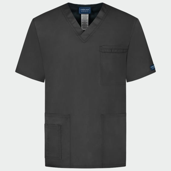 Scrub top BARTOLO of the CHEROKEE brand is a unisex work scrub top made of cotton, polyester, and elastane.