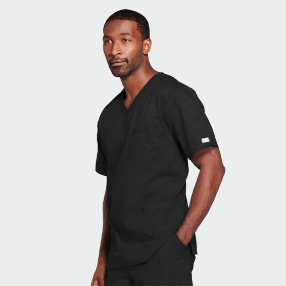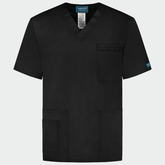 Scrub top BARTOLO of the CHEROKEE brand is a unisex work scrub top made of cotton, polyester, and elastane.