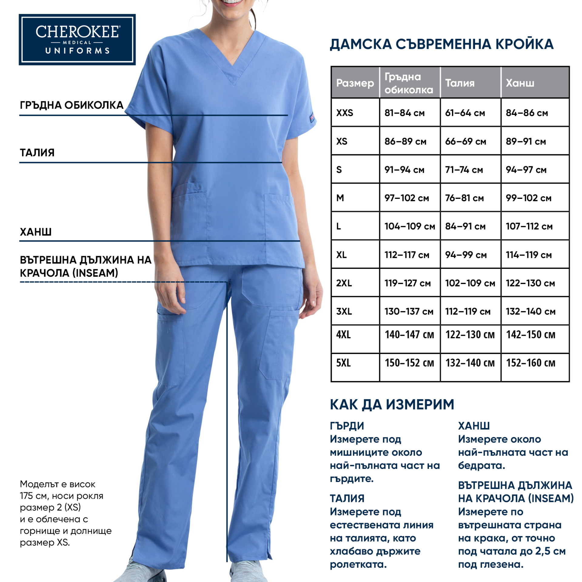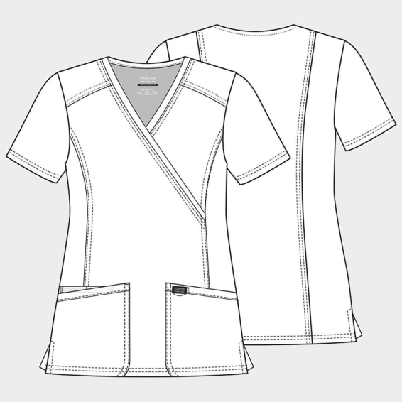 CHEROKEE REVOLUTION WWE610 scrub top is an elegant, women's scrub top with a regular fit and a modern look. The medical tunic is made of 78% polyester, 20% viscose and 2% elastane with a density of 170g/m².