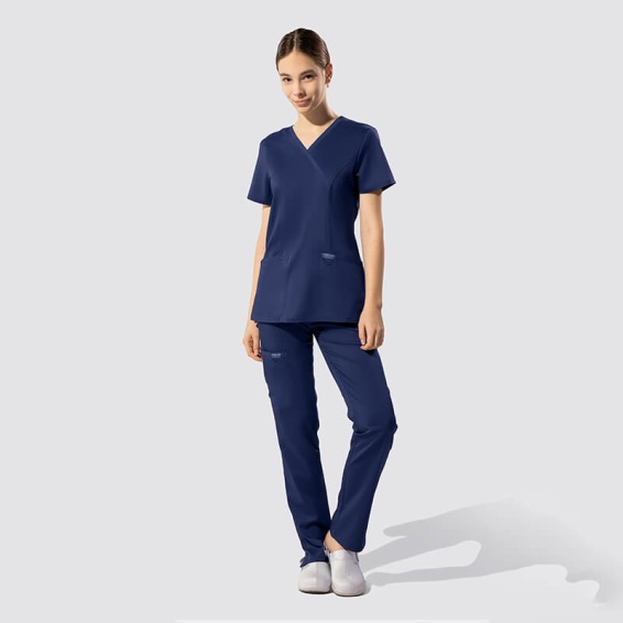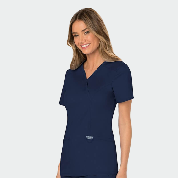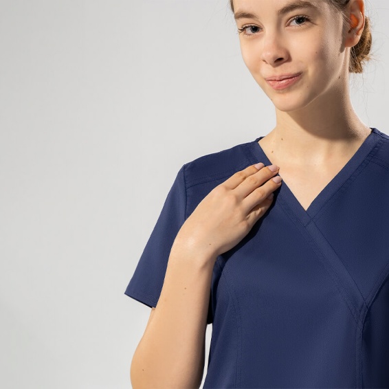 REVOLUTION WWE610 scrub top is made of polyester, viscose and elastane in 9 modern different colors. The CHEROKEE scrub top has a soft material, guaranteeing an excellent look, convenience and comfort. It is suitable for the daily work of doctors, nurses, dentists, pharmacists, veterinarians, medical staff, workers and students.