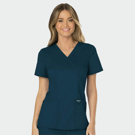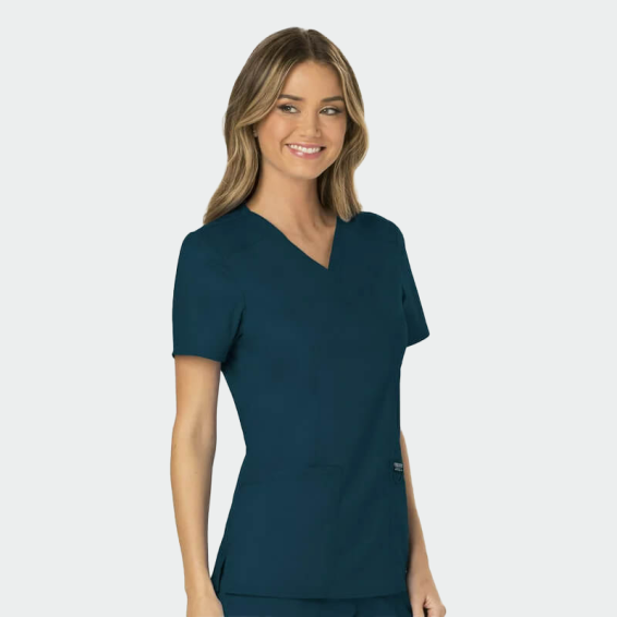 REVOLUTION WWE610 scrub top is made of polyester, viscose and elastane in 9 modern different colors. The CHEROKEE scrub top has a soft material, guaranteeing an excellent look, convenience and comfort. It is suitable for the daily work of doctors, nurses, dentists, pharmacists, veterinarians, medical staff, workers and students.