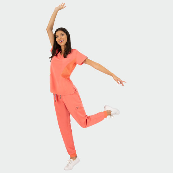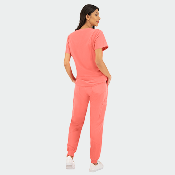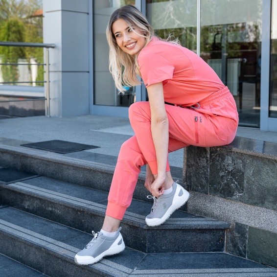 Scrub top JUSTINA is made of ethereal material, a combination of polyester, viscose and elastane. The modern cut with an added polyester snap makes it easy to wear and extremely gentle when touching the skin. The scrub top is suitable for the daily work of doctors, nurses, dentists, pharmacists, veterinarians, medical personnel, workers and employees in aesthetic centers.