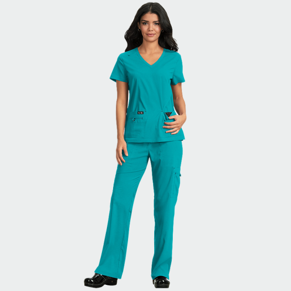 The BASICS 373 medical Scrub top is available in seven modern colors. Its soft polyester and elastane blend ensures a polished look, exceptional comfort, and ease of movement. Ideal for daily use by doctors, nurses, dentists, pharmacists, veterinarians, medical staff, workers, and students.