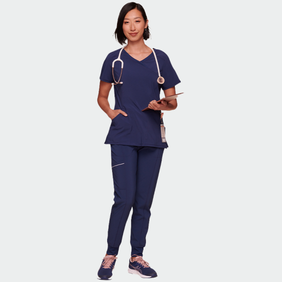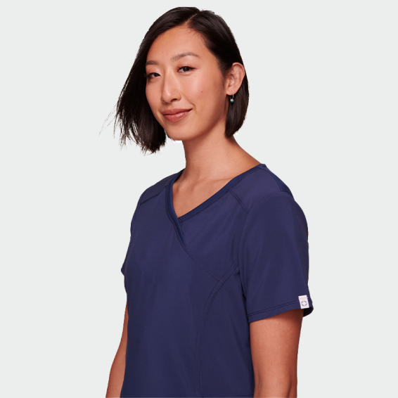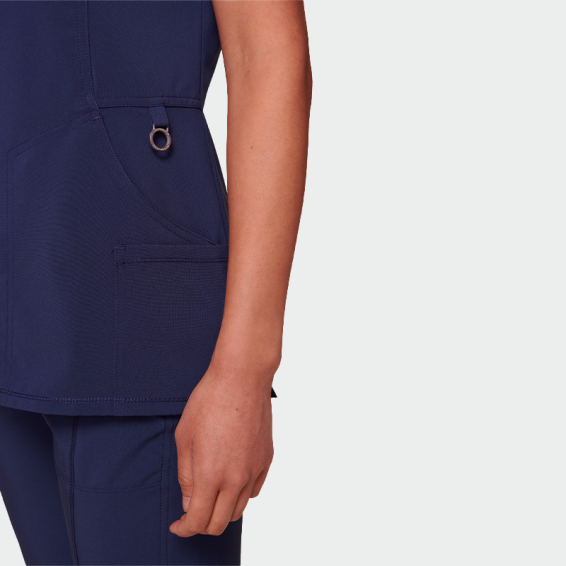 with a regular fit and a modern look. Elegant fitted women scrub top