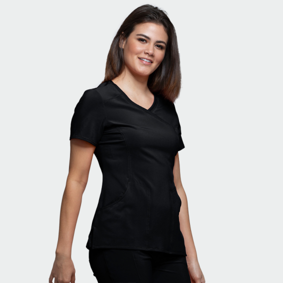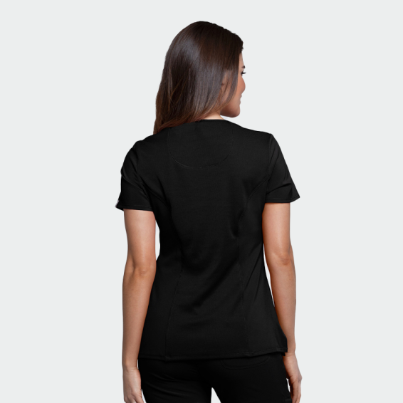 INFINITY CKE2625A Scrub top is an elegant, women's scrub of the CHEROKEE brand with a regular fit and a modern look. Elegant fitted women scrub top with short sleeves and an V-neck, with three outer pockets and one small hidden pocket. The medical tunic is made of 95% polyester and 5% elastane with a density of 175g/m².