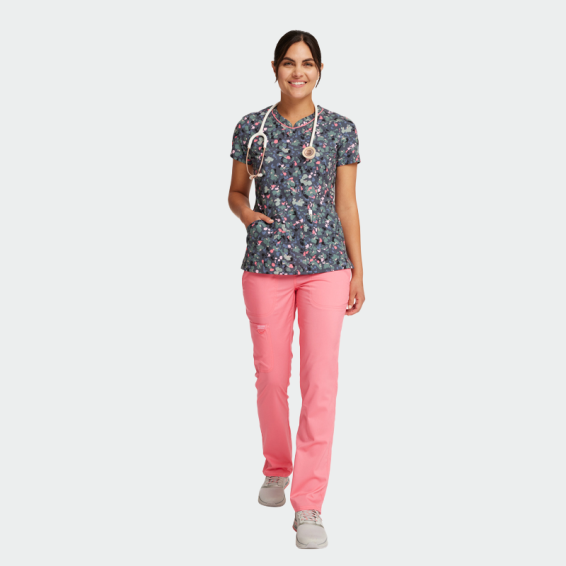 Scrub top CK678 is an elegant CHEROKEE brand women's scrub top with a