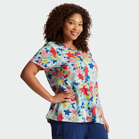 Scrub Top Dickies EDS DK616 Print Blooms So Retro