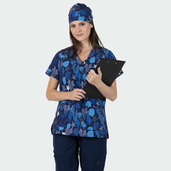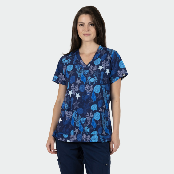 Scrub Top Isabella Print Sea Life