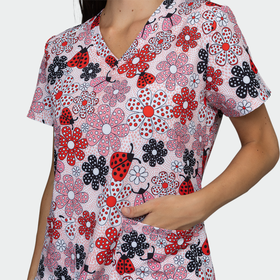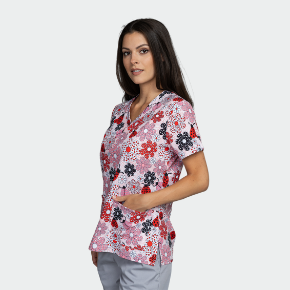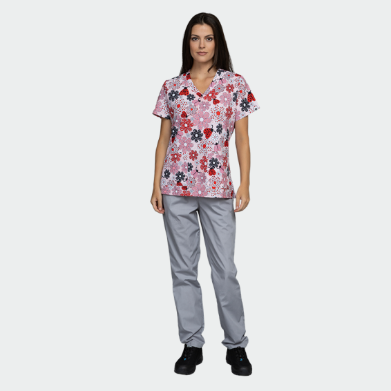 The ISABELLA tunic is made from a lightweight fabric blend of polyester and elastane. Its modern cut offers ease of movement and a soft touch against the skin. This tunic is perfect for everyday use by doctors, nurses, dentists, pharmacists, veterinarians, medical staff, and professionals working in aesthetic and wellness centers.