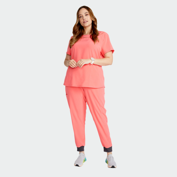 brand with a fitted silhouette and a modern look. The scrub top is made