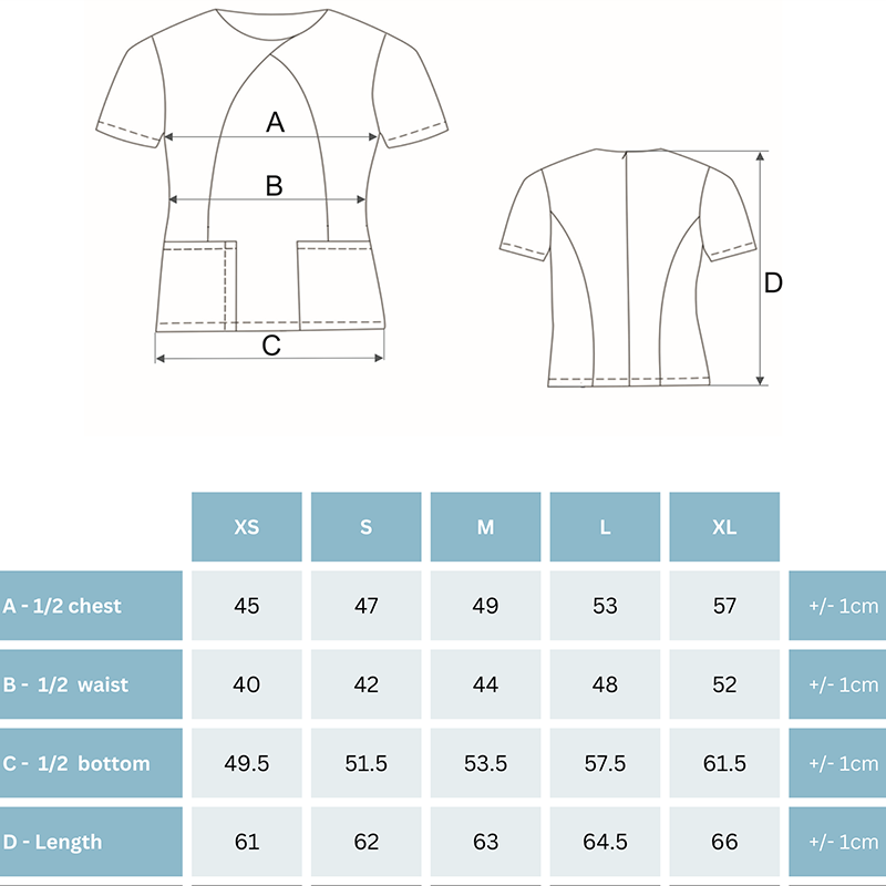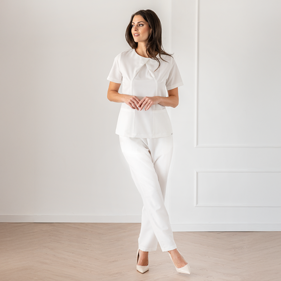 VICTORIA Scrub Тop is a modern women's tunic with short sleeves, a