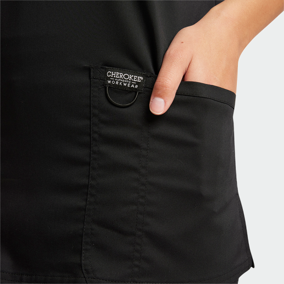 The Medical Tunic REVOLUTION WWE620 is an elegant women's tunic by CHEROKEE with a fitted silhouette and modern look. The medical tunic is made from 78% polyester, 20% viscose, and 2% elastane with a fabric density of 170 g/m².