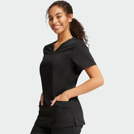 The Medical Tunic REVOLUTION WWE620 is made from polyester, viscose, and elastane in several modern colors. This work tunic by CHEROKEE features a soft fabric, guaranteeing an excellent appearance, convenience, and comfort. It is suitable for the daily work of doctors, nurses, dentists, pharmacists, veterinarians, medical staff, workers, and students.