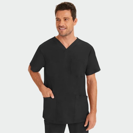 The Mathew scrub top by Healing Hands is a men's work scrub made from polyester and elastane.