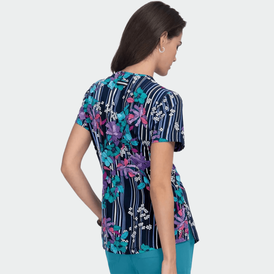 The tunic is wrinkle-resistant and retains its vibrant colors even