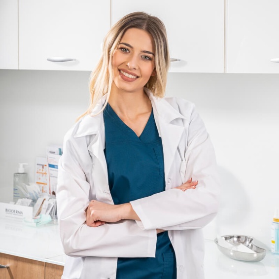 Our medical coat BIANCA has a modern design, made of high-quality