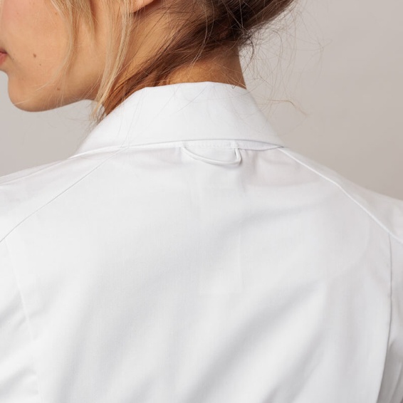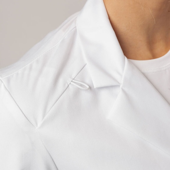 Medical coat CKE421 is made of 65% polyester and 35% cotton with a density of 166g/m².