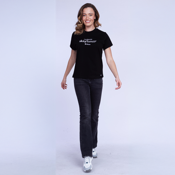 The design of the SkinFluencer women's T-shirt is enhanced with luxurious embroidery, adding elegance and attention to detail. Perfect for everyday wear or special occasions, this T-shirt delivers both style and comfort. The model features a loose fit, making it suitable for various outfit combinations. We recommend washing at 30°C with the T-shirt turned inside out.