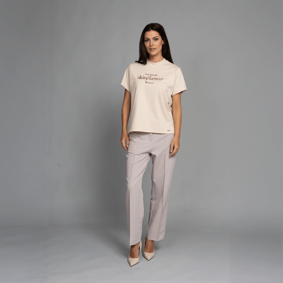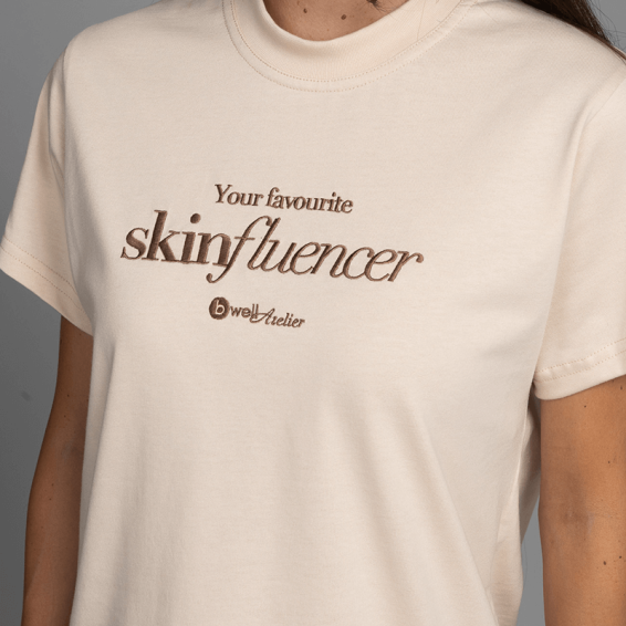 The women's SkinFluencer T-shirt from our luxury Bwell Atelier collection is made of 100% soft and breathable cotton, featuring "Skinfluencer" embroidery that offers exceptional all-day comfort.