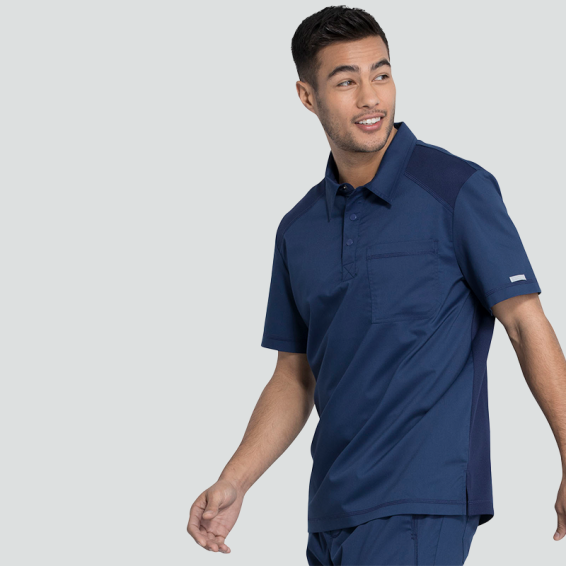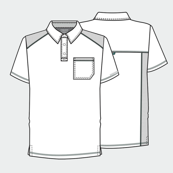 The REVOLUTION WWE615 is an elegant and modern men's polo t-shirt by Cherokee, made from 78% polyester, 20% viscose, and 2% elastane with a fabric density of 170 g/m².
