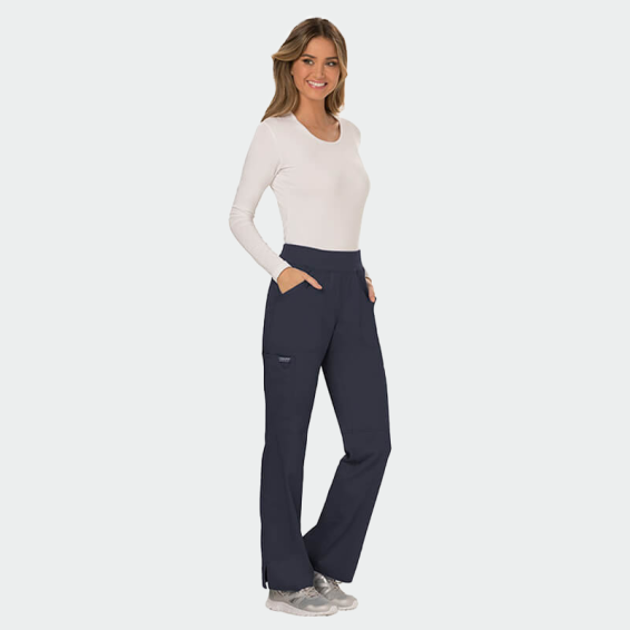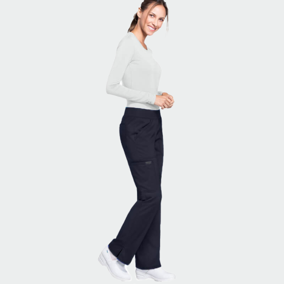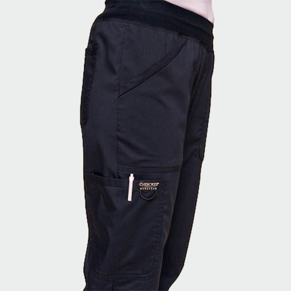 Scrub trousers CHEROKEE REVOLUTION WWE110 are made of 78% polyester 20% viscose and 2% elastane with a density of 170g/m², which allows a lot of freedom of movement and comfort throughout the day. Medical scrub trousers of a breathable fabric, which prevents sweating and makes you feel safe and confident at work. They are suitable for the daily work of doctors, nurses, dentists, pharmacists, veterinarians, medical staff, workers and students.
