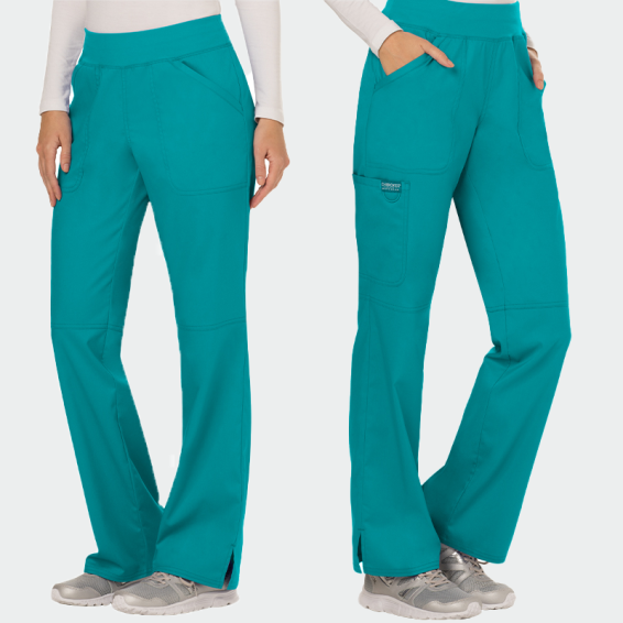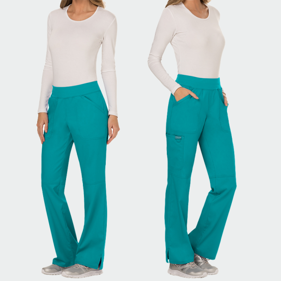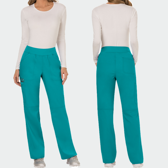 Scrub trousers CHEROKEE REVOLUTION WWE110 are made of 78% polyester 20% viscose and 2% elastane with a density of 170g/m², which allows a lot of freedom of movement and comfort throughout the day. Medical scrub trousers of a breathable fabric, which prevents sweating and makes you feel safe and confident at work. They are suitable for the daily work of doctors, nurses, dentists, pharmacists, veterinarians, medical staff, workers and students.