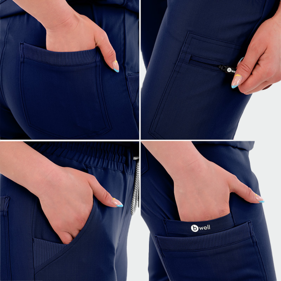 The RICCI medical pants are a new top model from the B-well brand. These unisex pants are made from a lightweight fabric—a combination of polyester, viscose, and elastane.