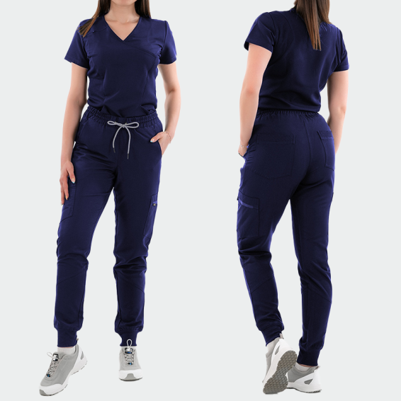 The pants feature a sporty-elegant cut, making them extremely functional for both work and home environments. They are made of 72% polyester, 21% viscose, and 7% elastane with a fabric weight of 200g/m², offering excellent freedom of movement and all-day comfort. These medical work pants are made from breathable fabric, preventing sweating and helping you feel confident and secure on the job. They are suitable for everyday wear by doctors, nurses, dentists, pharmacists, veterinarians, medical staff, and employees in aesthetic centers.