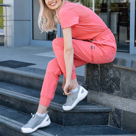 The pants feature a sporty-elegant cut, making them extremely functional for both work and home environments. They are made of 72% polyester, 21% viscose, and 7% elastane with a fabric weight of 200g/m², offering excellent freedom of movement and all-day comfort. These medical work pants are made from breathable fabric, preventing sweating and helping you feel confident and secure on the job. They are suitable for everyday wear by doctors, nurses, dentists, pharmacists, veterinarians, medical staff, and employees in aesthetic centers.