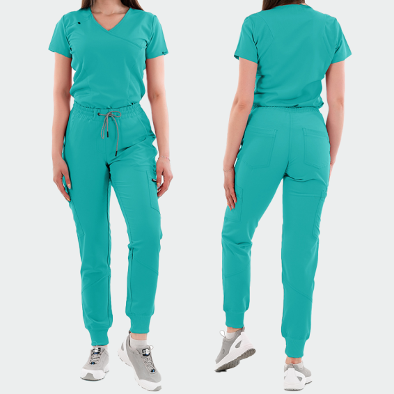 The pants feature a sporty-elegant cut, making them extremely functional for both work and home environments. They are made of 72% polyester, 21% viscose, and 7% elastane with a fabric weight of 200g/m², offering excellent freedom of movement and all-day comfort. These medical work pants are made from breathable fabric, preventing sweating and helping you feel confident and secure on the job. They are suitable for everyday wear by doctors, nurses, dentists, pharmacists, veterinarians, medical staff, and employees in aesthetic centers.