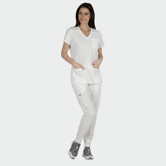 MAURI scrub trousers are elegant women's pants made of polyester, viscose and elastane, which makes them extremely functional in both work and home environments and allows a lot of freedom of movement and comfort throughout the day. MAURI medical work pants have breathable material that prevents sweating and makes you feel safe and confident at work. They are suitable for the daily work of doctors, nurses, dentists, pharmacists, veterinarians, medical staff and employees in aesthetic centers.