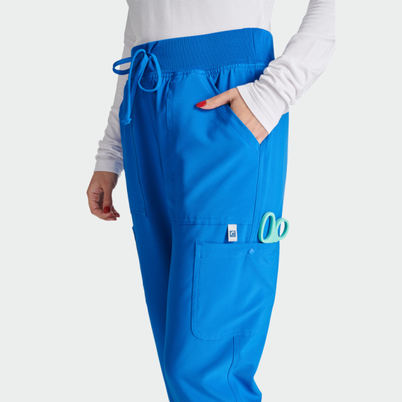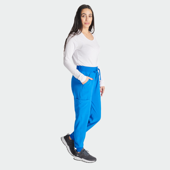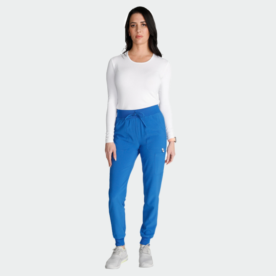 Elegant, women's jogger scrub trousers CK249A of the CHEROKEE brand have a comfortable, modern line and a narrowed leg silhouette.
