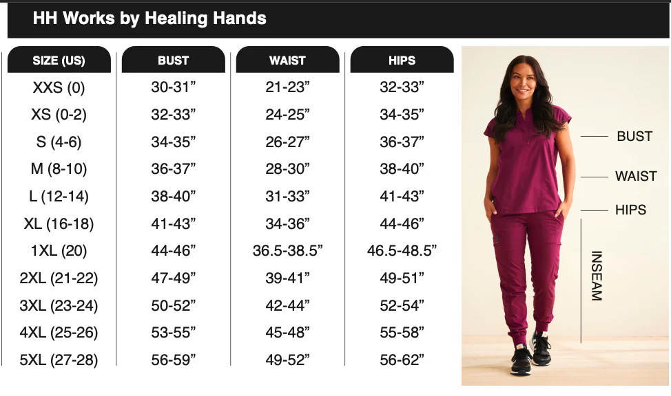 The HH REBECCA medical scrub pants from Healing Hands are made of 91% polyester and 9% spandex with a fabric weight of 175g/m², offering excellent flexibility and all-day comfort. These professional scrub trousers feature a soft, stretchy fabric that supports ease of movement and confidence on the job. Ideal for doctors, nurses, dentists, pharmacists, veterinarians, healthcare workers, students, and medical staff in fast-paced environments.